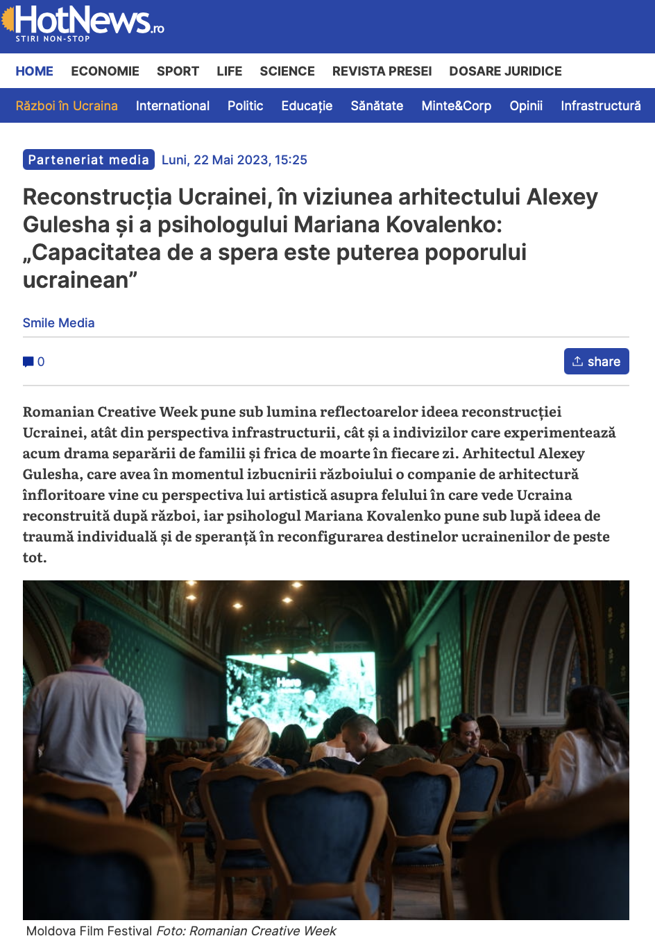 Reconstrucția Ucrainei, în viziunea arhitectului Alexey Gulesha și a psihologului Mariana Kovalenko: „Capacitatea de a spera este puterea poporului ucrainean